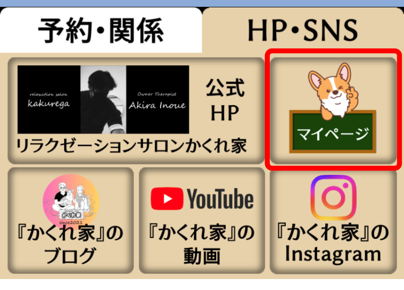 1.マイページは、かくれ家公式LINEのここから見ることができます。