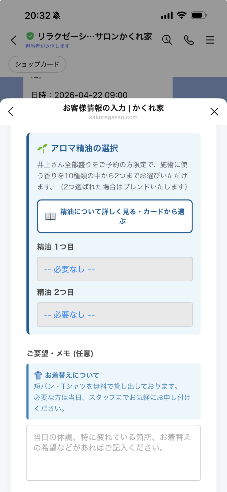 御予約の際にアロマをお選びいただけるように改良いたしました。